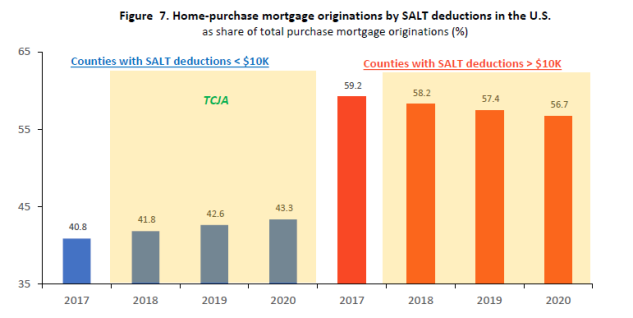 - The SALT cap may have dampened annual home price growth as well as mortgage originations in counties with historically high SALT deduction use.