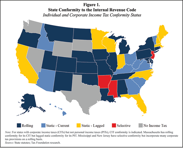 Every state that levies a net income tax has been studying the impact of the OBBBA on their income tax codes and revenues for months now. Several have publicly issued reports on that impact, and a number of state legislatures — especially those with income tax codes that automatically incorporated many, if not most, OBBBA tax changes — have convened special sessions to determine how to respond (see map showing the different methods states use to conform to the IRC).